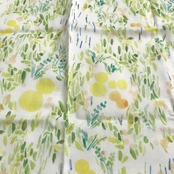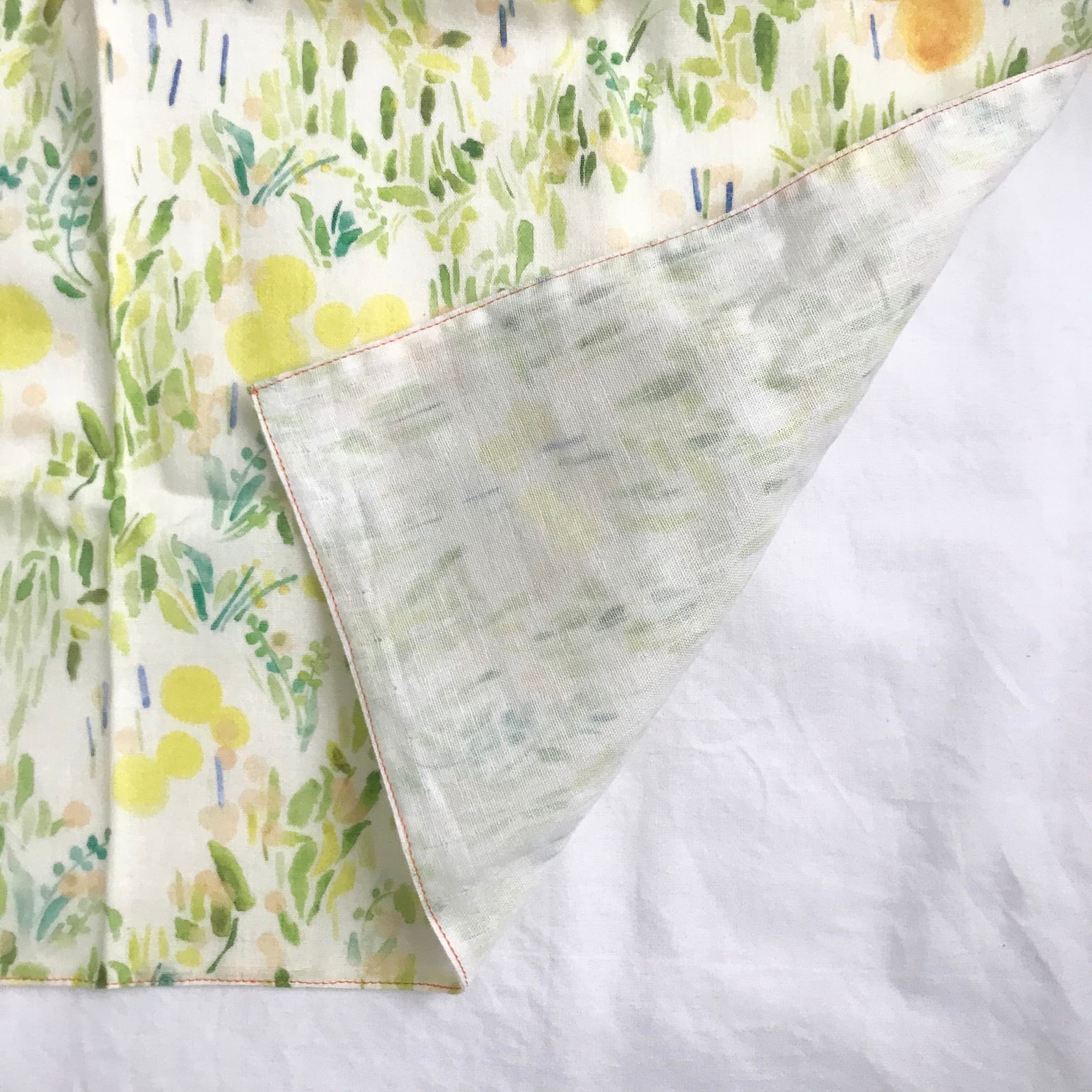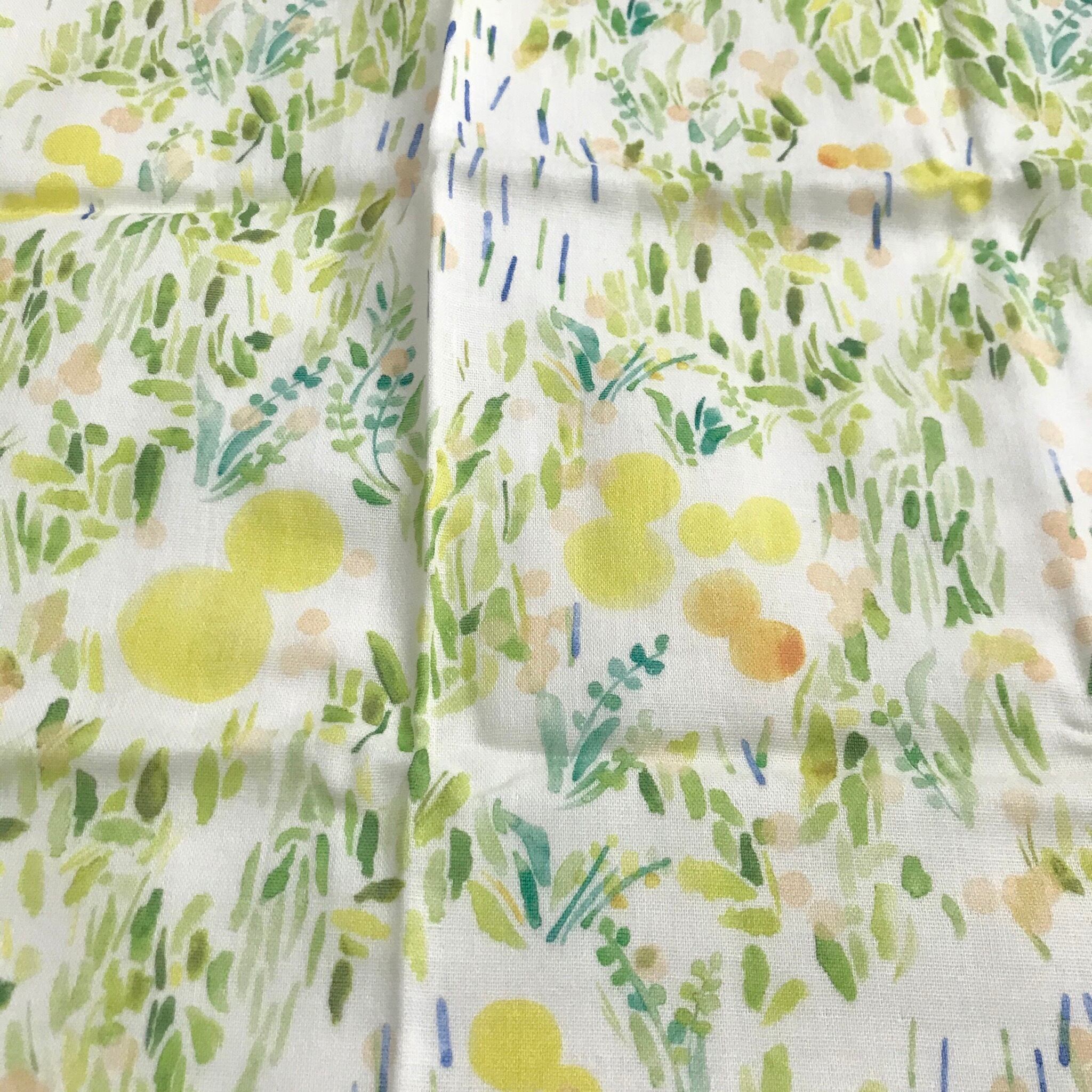 水彩で描いた柄を布印刷によりオリジナルテキスタイルにして